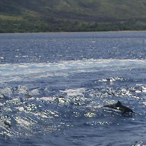 イルカはボートの下を潜ったり、ボートの波あとで波乗りを楽しんでるみたいで見て楽しかったです。