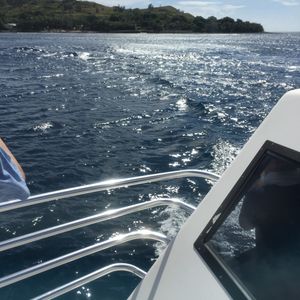 イルカは小さなのがちょっと見えただけで、一生懸命探さないと見えませんでした。小さな子供は見えたのかどうか…。オーストラリアで参加したイルカウォッチングは沢山のイルカが船の周りをジャンプしていたので残念でした。子供達に見せたかった物を見せられなかった。これがグアムの標準なのか、たまたまこれしか見れなかったのかはわかりません。