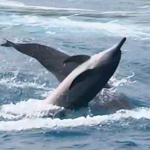 その後、船長さんが船で波を作ると、イルカ達がその波に乗って一斉にジャンプをし、船とイルカの素晴らしい共演が見れました。