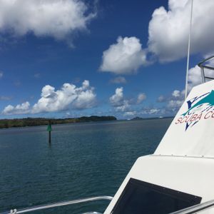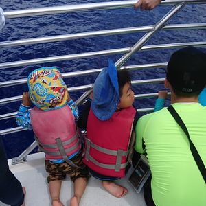 旦那と6歳、4歳の息子と参加。非常に残念だったけど、ガイドさんは面白い方だし、綺麗な海を船に乗って波風を感じるだけでも楽しかった。船の二階は、7人までと制限があったのですが、全然変わってもらえず、1番最初に二階に行ったグループが、1時間くらいずっと降りてこない。二階に上ろうとすると船長にノー&人数のことを言われた。他の家族もうちの子供達も二階に行きたがっていたので船長さんにチェンジをお願いしたけど、ノーと言われてしまった。イルカ見れない、海も何も変化なく子供達も段々退屈に。最終的に状況を知らない親子が、二階に登り(たまたま船長さん見てなかった)ようやく交代。二階にいたグループの方は、後から合流で個人的に説明を受けていた。最初に二階に上がれたのもそのグループ。料金が違ったのかも知れない。
