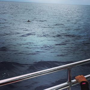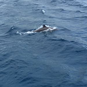 はじめは遠くのほうにちょこっと背びれが見れる程度で、やっぱり自然のもの、なかなか人間の思い通りにはならないよな~~これくらいでも見れただけでよかったと自分を納得させてたところ、上の操縦室から見てた他の方が「あっ、イルカだ!」とさけび、みんなでその方が指さしてる方向をみたら。。。