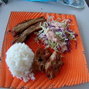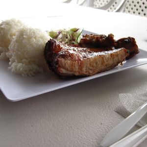 ランチも、パンケーキに春雨(チャロモ味?)、ピザだけプレートにのせたら、もうお腹一杯になってしま、ほかの料理を食べられませんでしたが、全て、とてもおいしかったです。グアムで何件かレストランをめぐりましたが、ここのランチが一番リーズナブルで味も良くて大満足です。テーブルも開放感抜群で気持ちがよかったです。子供もパンケーキやフルーツを堪能し、親子で、おいしかったね~っと笑顔になりました。ウミガメを見た後のパンケーキ、本当にお薦めです。ランチの最中、ヤシの葉で、魚やバラを作ってくれて、プレゼントに頂けました。子供はとっても喜んでいました。ただ、一つ、要求できるなら、海中展望塔の後の時間が開きすぎて、時間を持て余してしまったので、ここで時間を潰すくらいだったら、もっとシュノーケルをしていたかったです。シュノーケルをする体力も、子供もまだまだ余裕だったし、きれいな魚がたくさん泳いでいたので、本当に時間が経つのがあっという間だったので、もう少し時間を増やしたほしかったなあ。