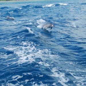 最初にイルカウォッチングでいくつかイルカの出るポイントがあるみたいで、恋人岬近くまで船を走らせてもなかなかイルカには会えなかったのですが、最後に船が出発した船着場近くでイルカ5頭にあえました!船の真横まで近づいてきてくれてすごく近くで見れました。体験ダイビングは日本人のインストラクターのおかげで不安なくできてとてもよかったです!