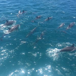 何頭ものイルカが私達の乗った船が起こす波に乗って遊ぶ姿は可愛くて感動!