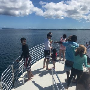 参加者は日本人と韓国人だらけで、スタッフが英語・日本語・韓国語で説明してくれるのでわかりやすかったです。アウトリガーから一時間弱で目的地へ着き、船に乗り10分程度で目当てのイルカにも遭遇できました。その後少し移動しオーシャンパークへ。トランポリン・滑り台、子供だけでなく大人も楽しめました。シュノーケルで沢山の魚を見ることもでき、スタッフの方が巣潜りでナマコやヒトデを取って見せてくれたりと、素敵な経験ができました。アクティビティーの内容はもちろん、スタッフの方も楽しく、また参加したいと思えるツアーでした。