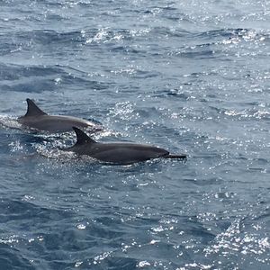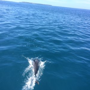 イルカの群れが船に沿って泳いでくれる事もあれば、遠くで泳いでいる事もありますが天候やイルカさんの気まぐれと思い不満はありません。