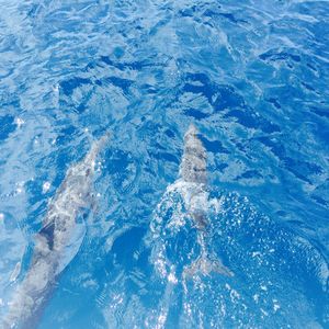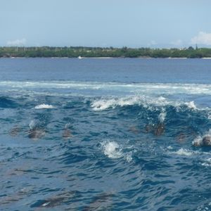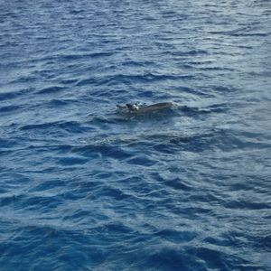 最初はイルカに会えず、諦めてシュノーケリングタイムになったんですが、船長が無線で他の船と連絡を取ってくれて、近くにいるから、すぐに行こう!!となり、無事イルカに会えました。