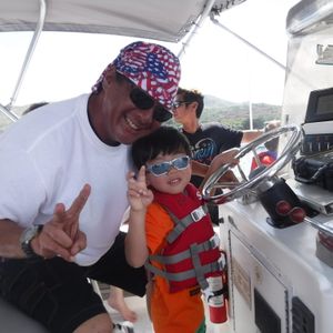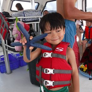 今回初めて家族でグアムへ!子供3人のお兄ちゃん。お姉ちゃんは初めての海の上でも楽しんでいました。一番下の子4歳はは怖がり船の上でいましたが、現地スタッフのお兄さんに魚の餌貰い海の魚にあげて楽しんでいました。少し海に慣れてきましたが、残念ながら海には入れず。