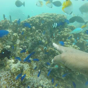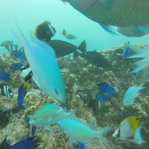 シュノーケリングは、非常に楽しませてもらいました。餌付け体験も非常に楽しく、現地ガイドも優しく、楽しく対応してもらい、大変満足しました。現地ガイドが、ダイヤモンドリンクを何度も作ってくれたことは、大きな思い出になりました。また行きたいナンバーワンんです。そして、正直期待していなかった昼食がおいしかったことが誤算で、満足しました。非常にタナボタなオプションツアーだったと思います。