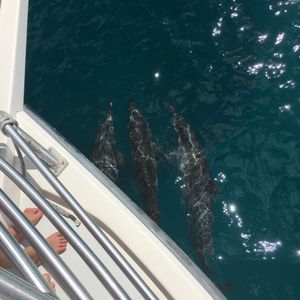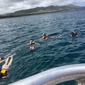 イルカがいる所を無線で確認して連れていってくれるので、イルカの群れを見る事が出来ました。その後シュノーケルのポイントでシュノーケルをしたり、船に接続されているトランポリンや滑り台で遊んだり、とても充実したツアーだと思います
