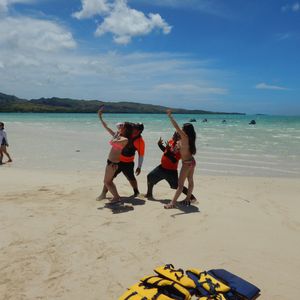 船にくっついたミニスライダーから海にダイブしたあとは舟紐を手にもち安全な沖のシュノーケリングを楽しめ、美しい沢山の熱帯魚を眼下にもらったパンを餌付けして間近に寄りつくこともできます。焼肉弁当、ジュースお水のフリードリンクも最高でした。