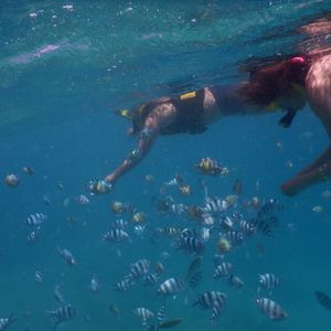 たくさんの魚に囲まれてシュノーケルをする事ができました。