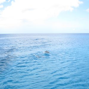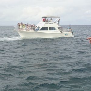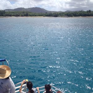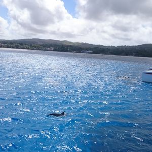 参加したのは一昨年の9月です。ちょうど日本で強い台風がきていて、その影響で当日はグアムも海の波が荒れていました。曇りで波が荒れていたためツアーは中止かと始め思いましたが、ガイドさんは船を出すとのことで参加しました。船に乗ってみるとアトラクションかのように船の揺れがすごかったです。私の連れも含め、多くの参加者の方が酔ってました。私はなんとか大丈夫でしたが、あの揺れは今でも覚えています。ガイドさんはイルカを探すためにいろいろとまわって探してくれました。いつもならイルカを見ることができると言っていましたが、結局出会うことができませんでした。ガイドさんは頑張ってくれたと思います。私の連れが体調ダウンの為に次の日のリベンジ参加を断念しましたが、野生イルカを今度は必ず見てみたいと思っています。必ずリベンジします。