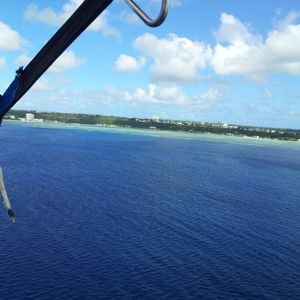 受付したところから1時間ほど車で走ったエリアで船に乗り込み、まずはバナナボートとパラセールを体験。バナナボートは無料だったので、思っていたものとは少し違いましたが、それでも波の上を走る感覚はとってもスリリングでした。また、パラセールも高いところからグアムの海・島・空が見渡せ、とても気持ちが良かったです。その後一旦最初に船に乗り込んだ場所まで戻り、別の船に乗船してイルカ&オーシャンパークへ。船の隣を泳ぐイルカを間近で見られ、大興奮!シュノーケリングでは、海も魚もサンゴもとってもキレイで時間を忘れて泳いでしまいました。イルカガイドのジローさんはじめ、他のスタッフの方も気さくで、楽しい時間を過ごすことができました。これだけでも大充実でしたが、次回はダイビングにもチャレンジしてみたいです!!