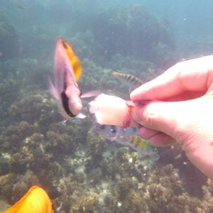 jskc様 この度はご参加ありがとうございました。手から餌を持って行かれる場合もありますので(お客様によっては指をかまれてしまったり)、魚も個体によって結構性格が違うのかもしれませんね(^^) 当ツアーのシュノーケリングは足のつかないエリアでの本格的な内容となりますので、体力面も考慮し長時間の設定はしていないのですが、頂いたコメントは貴重なご意見として今後の参考とさせて頂きます。午前コースと書いて下さっているのは「シュノーケリングだけコース」でしょうか(10:30頃ホテル戻り)、ランチ付コースの方でも、13:40、14:40頃にはホテルにお戻り頂けますので、午後のご予定も問題ないかと存じます♪ またどうぞ、グアムとフィッシュアイへ遊びにいらして下さいませ。スタッフ一同心よりお待ち申しあげております!