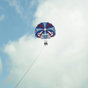 2人ずつ、パラセーリングをし、船に残っている方に写真撮影をお願いしました。みんな交代で写真が撮れたので良かったです。荷物置き場は、船の床なのでぬれてますので持って行くバックは防水できる素材にすればよかったと思いました。私は普通のバックだったので持っていったタオルも少し湿ってしまいました。