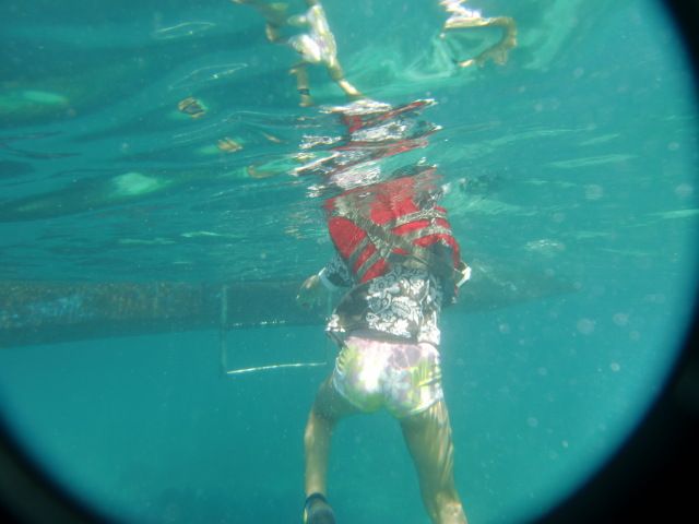 あいにくの雨でシュノーケルをした後は凍えながらお弁当を食べました。イルカもすぐ去ってしまい、お魚は同じ種類ばかりで、ちょっと期待はずれでした。