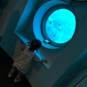 展望塔の中で海の中を見ていたらダイバーが目の前に現れたり