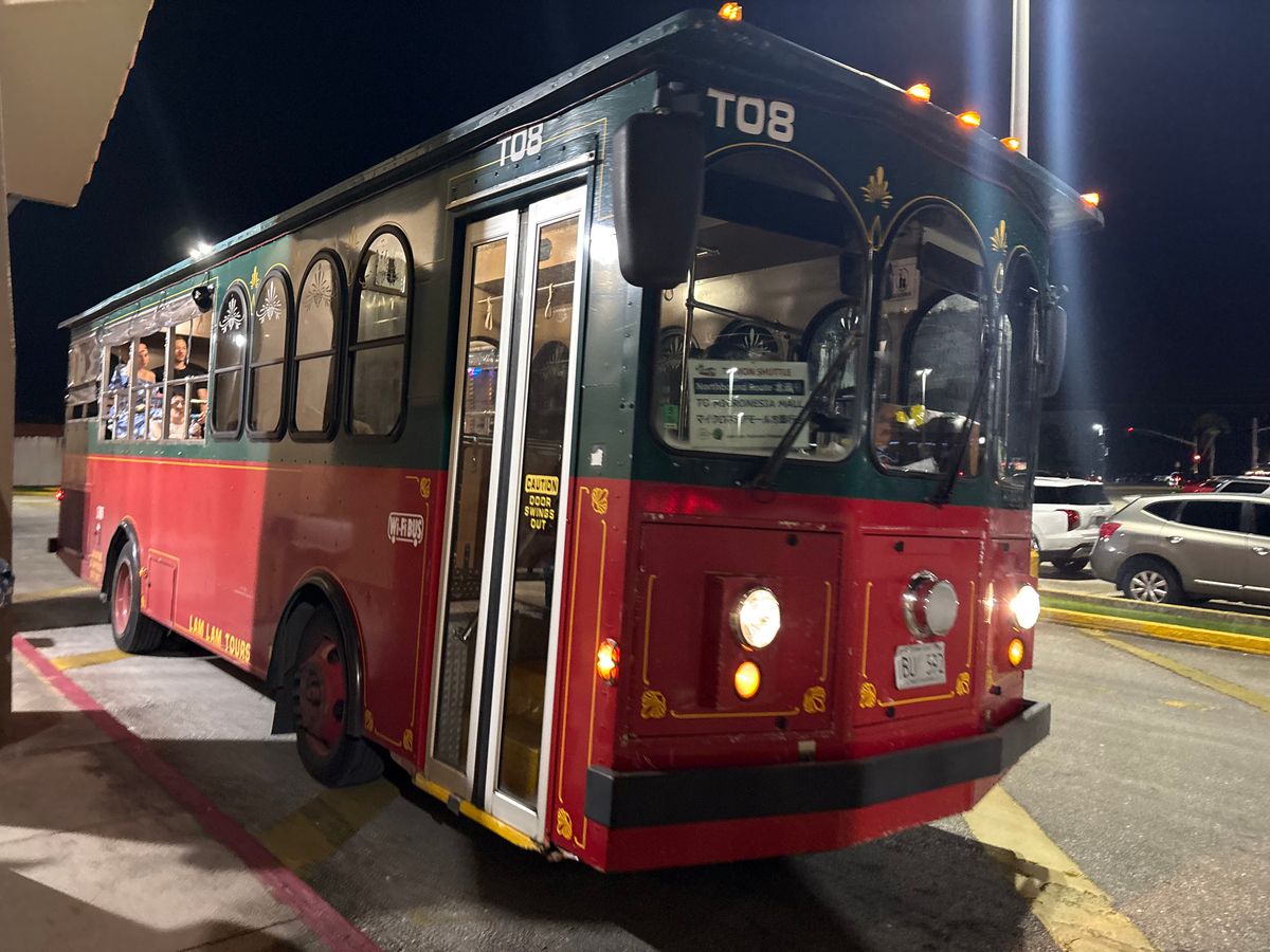 ひとり旅で、グアム到着当日に予約して往復で利用しました。往きの出発場所のプレミアム・アウトレットまではJCB カードを活用して赤いショッピングバスで行きました。帰りのバスの降車場所ははホテル近くでした。往復ともスムーズでスタッフも親切でよかったです。