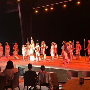 劇もご飯もドリンクも良かったです。虫にご飯を常に狙われていましたが、それ以外は従業員さん達も優しくて良かったです。ショーのあとに演者さん達が写真を撮ろうと席の周りに来てくれたのも思い出になりオススメです。