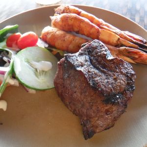 料理は、魚介をその場で焼いてくれたり、刺身があったりと、日本人の口にも合う繊細なもので、大変美味しかったです。また時間制限がなく、ビールやワインがフリードリンクだったので、ゆっくりと楽しめました。(ホットコーヒーなどの温かい飲み物は、なかったです。)何よりも日本人らしき人にも会わず、ワイワイガヤガヤと皆が心から楽しんでいるような雰囲気で、面白い人も多く、「グアムはいいなぁ」と実感しました。