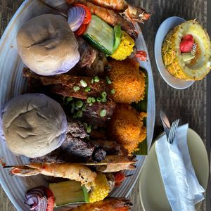 ディナーは、ステーキとシュリンプをその場で焼いていて、味付けもちょうど良く柔らかくて予想以上でした。他はビュッフェになっていてサラダやチキン、デザートを自由に取れるスタイル。