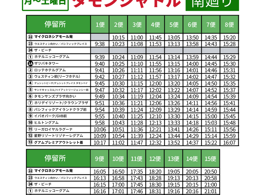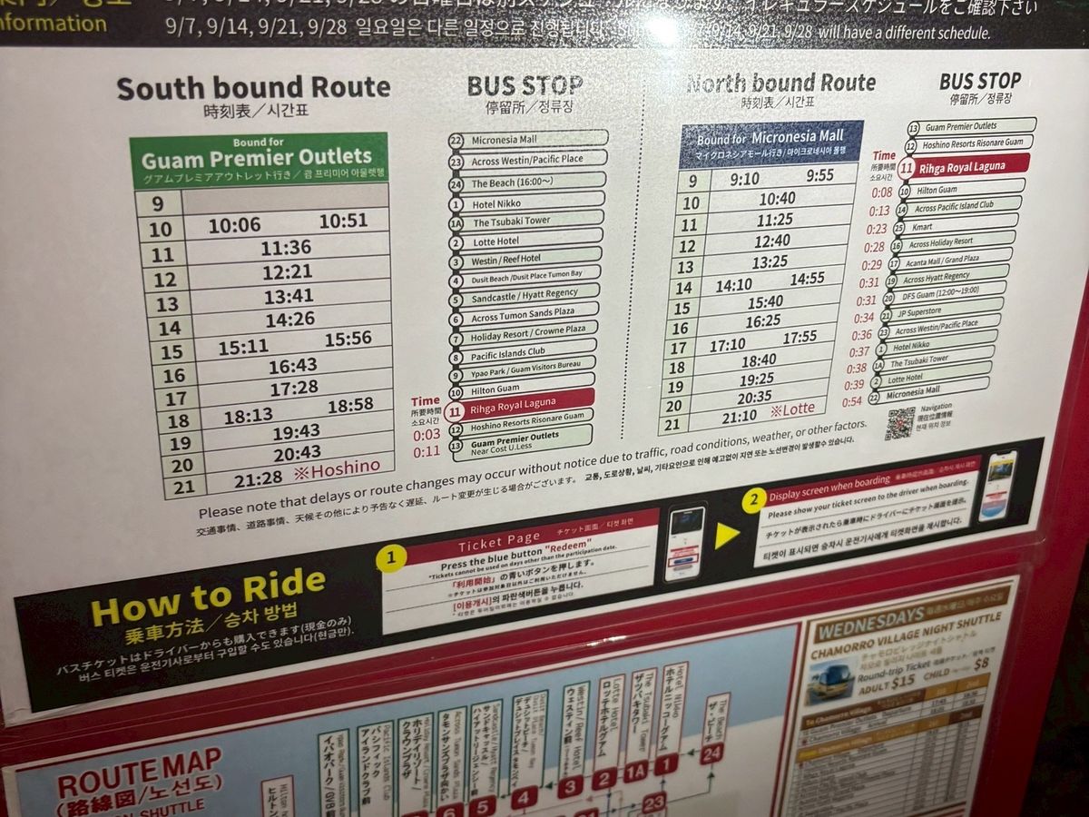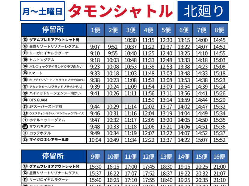 11月27日から29日までの滞在中、このチケットでタモンシャトルバスを活用しました。2009年に旅行で来た時はおよそ20分間隔でバスが来ましたが、今は45分間隔になり、時間通りにはなかなか来ませんが、グアム・プレミアム・アウトレットやマイクロネシア・モールに行くのにはかなり便利です。1回の乗車券が7ドルだから3日分乗車券だと25ドルで乗り放題だからタクシーよりも割安で、絶対に必須です。