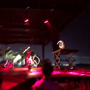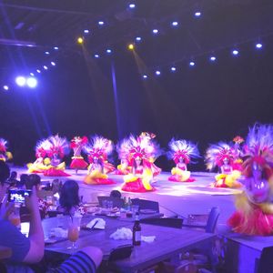 席は中央の正面。目の前で繰り広げられるショーを堪能しながらの食事は迫力満点で最高でした。最後は踊りたい人みんなが舞台に上がり暮れゆく海や雲をバックに笑顔で踊っていました。また行きたいです。