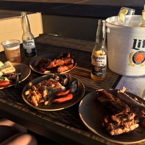 食事はビーフステーキとムール貝とスペアリブが美味しかった。デザートにフレッシュフルーツが出たので嬉しかった。ドリンクはお酒飲まない人はフリーにしなくていいと思います。
