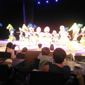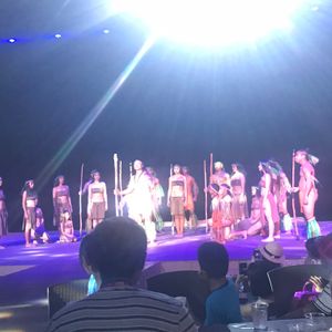 その後、ショーが始まりました。とても迫力がありました。食事をするところはとても広く観客も多かったのですが、ショーに出て来る人もたくさんで、見応えがありました。また、中央のステージをみていたら、急に席の近くで、踊ってくださる方がいたりと、見ていて飽きなかったです。