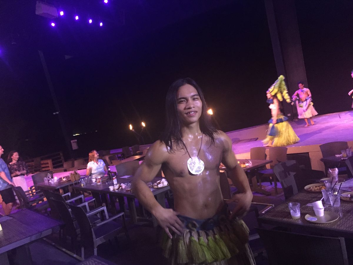 ショーが終わると、たくさんの出演者の方と自由に写真を撮ることができました。1歳の子どもを連れて行きましたが、グアムの方は、ベビーにも本当に優しく、みんな抱っこしてくれたり、声をかけてくれたり、親切でした。写真のときも、たくさん抱っこしてくださり、私たち夫婦にとっても、とても嬉しいことでした。