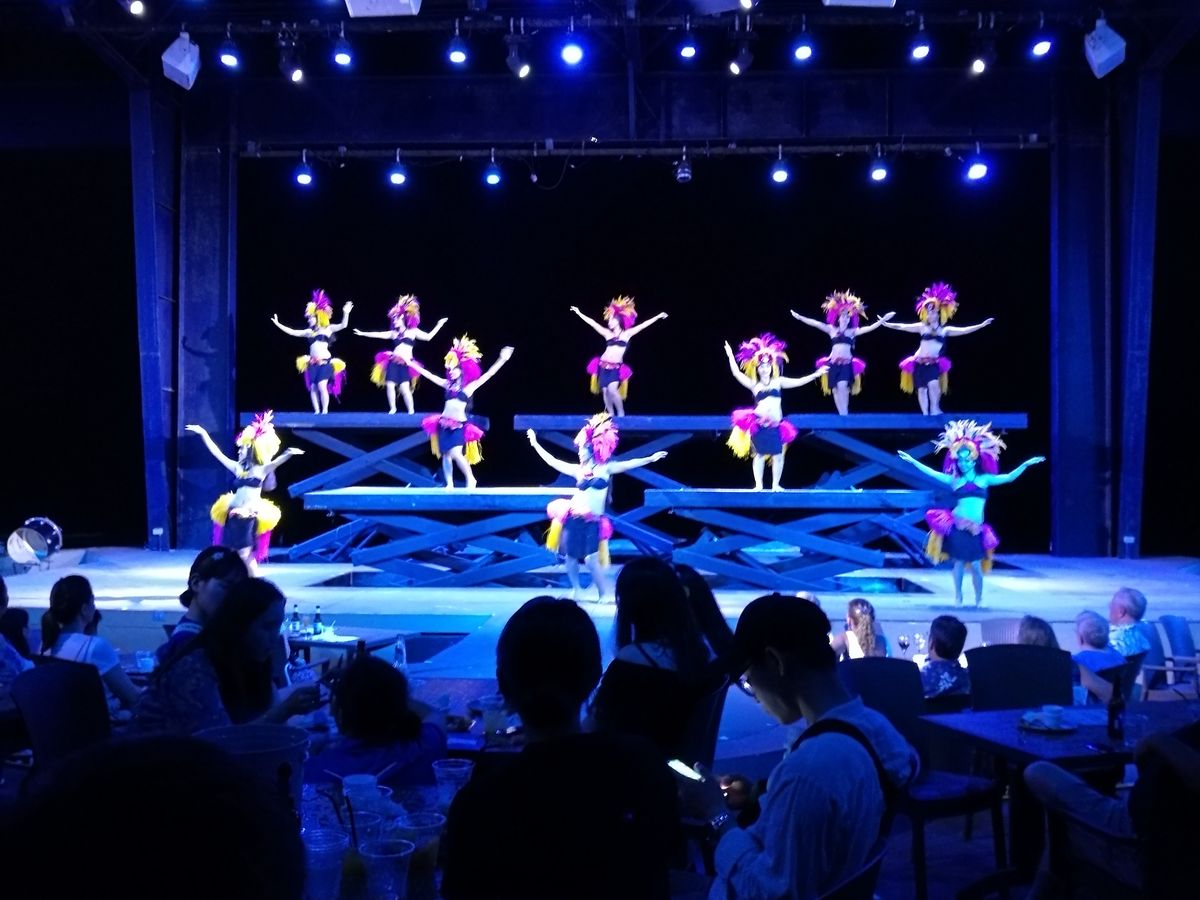 ショーが始まると、男性の強さと勇敢さを表現した迫力のダンスと、女性の美しさと優しさを表現したダンスが交互に演出されて、とても緩急がついて子供たちも飽きずに楽しめていました。