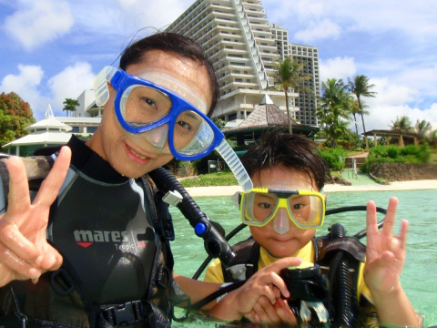グアムの海は透明度抜群!シュノーケルがはじめてというお子様にもおすすめです。 竜宮城シュノーケリングは安定した足場から落着いて着水ができ、事前にインストラクターから丁寧な説明もあるので安心です。 アプラ湾でのボートシュノーケリングは、浅瀬のサンゴ礁を窓付きボートに乗って泳ぐため水が苦手なお子様でも参加いただけます。餌付けもできるので、きれいなお魚達と触れ合うことができます。 また、4歳から参加可能なタンクを背負わないスヌーバダイビングもおすすめ。 重いタンクを背負わないので、体の負担なくダイバー気分が味わえます。 8歳以上のお子様は、もっと本格的なダイビングだってできちゃいます。専属のインストラクターが日本語で説明するので安心です。綺麗な海で、お魚たちと触れ合う体験はお子様にとって一生モノの思い出!ご予約はこちらから。