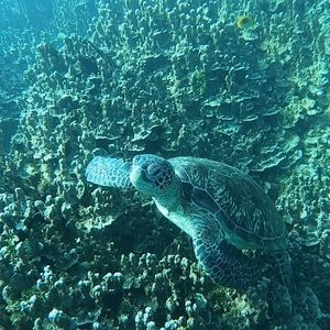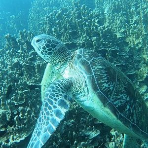 ウミガメシュノーケリングに初の2クラブ・グアムさんのツアーに午後から参加しました。ウミガメはうっすらちらっと見ることが出来ましたが、ちょっと濁っていて午前の回とは大違いと聞いて少し残念な感じでした。ですが、S2クラブさんのお客さんの対応がとても素晴らしく、飲み物なども準備されシュノーケルの仕方も日本語で丁寧に教えて下さり、器具の曇り止めなど配慮がとても良く子供連れでも安心して参加できました。ぜひ次回リベンジしてウミガメさんをはっきりくっきり見に行きたいと思います。ありがとうございました。