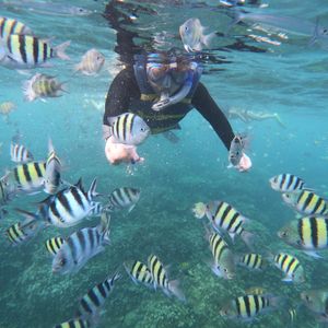 子供と参加しました。シュノーケルの使い方の説明などはありませんが初心者で子供も普通に泳げました。魚がいっぱいで海も綺麗で環境は最高でしたがマスクが合わず、水が入ってきて海水をめっちゃ飲みました。途中スタッフに状況を説明しましたがノープロブレムと言われました。