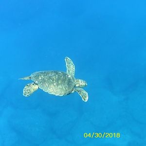 他の魚に2ドルで購入できるエサのウインナーをあげたりしていると、またまたウミガメ発見の呼びかけで2回もみることができました。