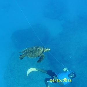 先に海に潜っていたスタッフさんの呼びかけでウミガメ発見!