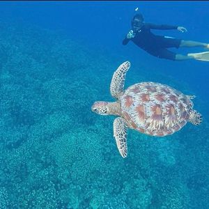 一緒に潜ってくれた現地のインストラクターさんも送迎同行して頂いた日本人スタッフさんもとても親切で安心して楽しめました。ウミガメシュノーケルは、月曜日だったせいか私達1組だけでボートも貸切状態でした。シュノーケルから戻ってくるとたくさんのダイバーさん達が出発して行かれました。帰りは宿泊していたレオパレスまで送って頂けました。何もかもホントにお世話になりました。またウミガメ会いに行きます!