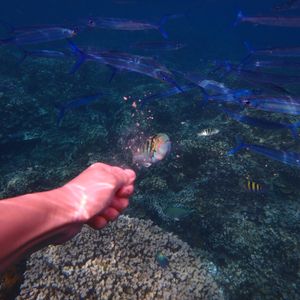 BBQ王者様 この度は、ご参加ありがとうございました。お写真、臨場感いっぱいに すごくよく撮れていますね!バラクーダも見れましたか~\(^-^)/ 展望塔周辺は海底火山が隆起したり陥没した複雑な地形で、深い場所はちょっと怖い気がすることもありますが(また海が透明なので、すごーく遠くまで見える為もあるかもしれません!)、ガイドが安全第一にご案内しますので安心してご参加ください。