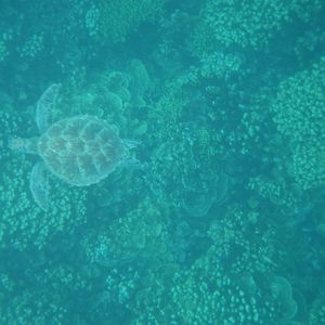 4~5匹のウミガメに会うことができ、しかも、ガイドさんの計らいでちょっと触れ合うこともできました。