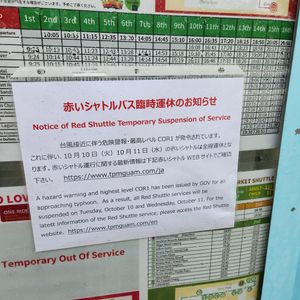 台風の影響なのか?バスの本数が少な過ぎます。1時間に1本では時間がかかり過ぎます。結局、ギャラリアからKマートまで歩いて行き、帰りはタクシーで帰りました。チケット購入しても使えません。早い復旧を望みます。