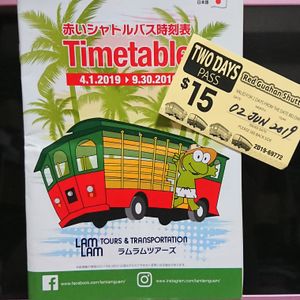 3泊4日の日程で2日間のチケットを購入。とても便利に使えました。無料バスもあるが、ギャラリア中心になっているので、このチケットとその無料バスを使いこなせば、ほとんどのショッピングゾーンは網羅できるし、待つのも10分以内がほとんどでした。1つのショッピングモールに行って帰るの往復だけでも8ドル、それが2日間で16ドル。それだけでも1ドルお得。ですが、グアムでそんな1日1か所のショッピング巡りのわけがない!もうちょっと割引率高くして安かったら言うことなしのカードです。