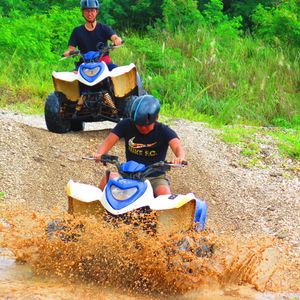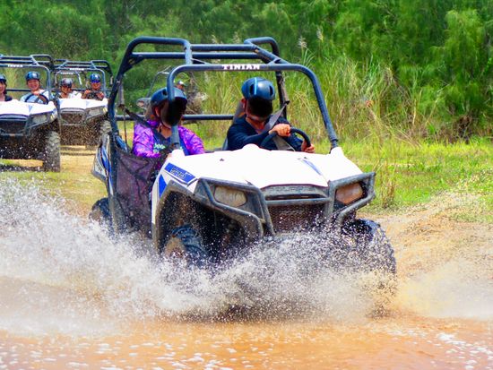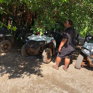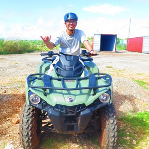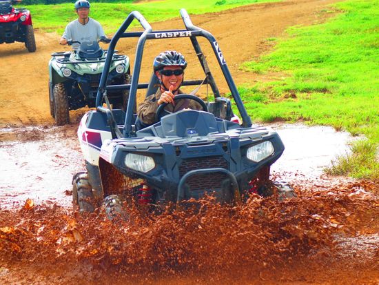 ATV!運転楽しかったです!!車の運転もバイクの運転も普段しないので、一人で運転できるか不安でしたが、簡単な操作でデコボコ道と、泥水の中をあえて、勢いよく入ったり、泥んこになりながら、かなり楽しめました。とりあえず汚れるので、黒いズボンとか汚れても大丈夫な服で行く方がいいです。