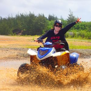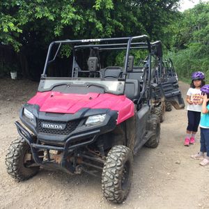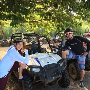 前日大雨でしたが当日は最高の天気で爽快でした!もっと泥だらけになるかと思い、マリンシューズ&ラッシュガードで参加しましたが、足元がすこーし汚れたくらいでした。途中の休憩ポイントでの景色は最高!その時に水分補給したかったので、個人的に飲み物を持参した方が良いと思います。ATVのエンジン付近がかなり暑いので、相当汗をかきます。ツアー終了後にDVDを見ながら、お水とポップコーンをいただきました。写真データのCD-Rは1枚$30で買えます。Go Proお持ちの方は、ぜひ持参することをオススメします!いい動画が撮れますよ!スタッフの皆さんも明るく楽しい方たちばかりで楽しかったです。