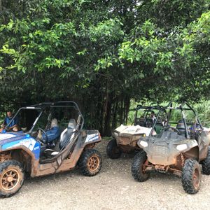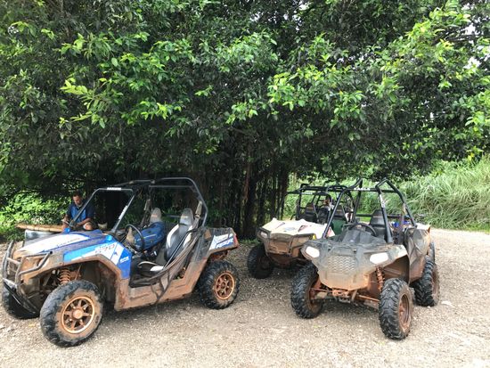 前日の雨で心配してたものの、当日は晴れ。2人で1台に乗り込み体験しました。途中、どデカイ水溜りを何度も越え、その度に泥水を浴びながら疾走する爽快感と楽しさ、ジャングルの中をボコボコの道を笑いながら進む楽しさはこれまでにない体験でした。途中、カメラマンが何枚も写真を撮ってくれ、最後にCD(30$)を購入。良き思い出になりました。