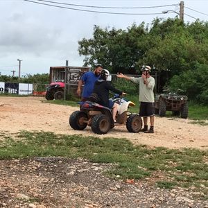 3人で体験したので、2人乗りと1人乗りで申し込み。ATVはバイクみたいなタイプで、ハンドルでエンジンかけたりスピード操作をしたり。