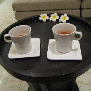下着を脱いで紙のショーツとガウンに着替え、準備ができました!と伝えて、二人同時にマッサージ開始!脚から背中、首、そして仰向けなり最後はヘッドマッサージです。主人は気持ちよかったのか、となりでいびきをかいて寝てしまい、仰向けになるときに私が起こしてあげました。気持ちよかったと満足していました。施術後は、待合室でホットティーを頂き、感想を書いて終わりです。16時50分にはすべて終わりました。