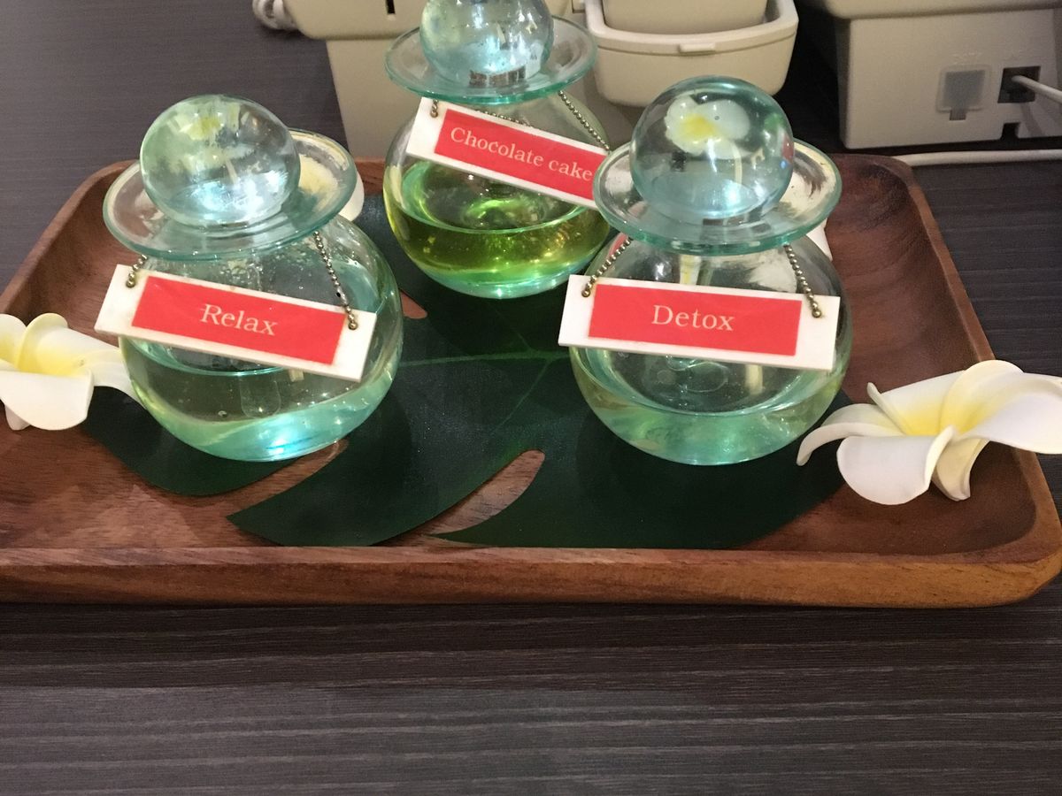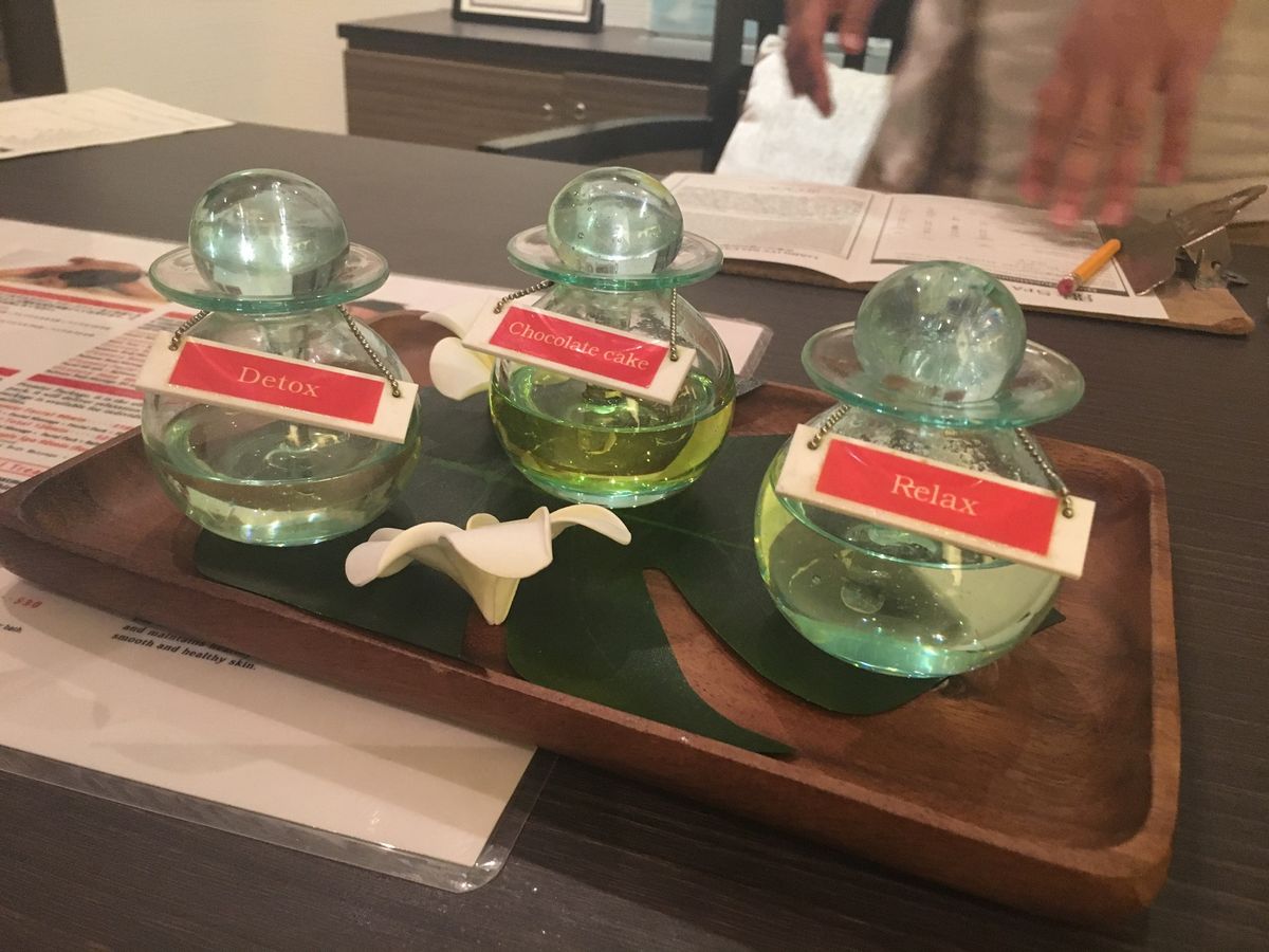 今回はオイルマッサージを予約しました。5時半からの施術予約で5時集合だったのですが、4時40分くらいに行きました。4種類の香りから効果や香りで好きなものを選んで。