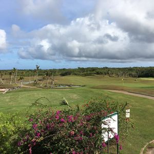 ハーフでの申し込み。レンタルシューズ(フットジョイ)レンタルクラブ(スリクソン)で、まぁ問題ないレベル。350mlのペットボトルを一人2本、アイスボックスに入れて配付されました。さすがの海風に悩まされましたが、景色もよく気持ちよくプレイできました。天候も前日のスコールもなく、曇天で暑すぎず快適だったので、ハーフをフルに変更しました。ラウンド後、昼食をとり、その後でホテルに送ってもらいました。次回来ることがあっても、またリクエストしたいです。