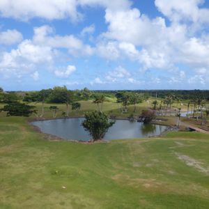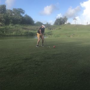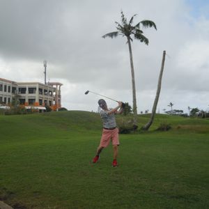 アウトリガー隣のディシュタニホテルに時間通りのお迎え。日本語OKの明るい運転手さん。フロントでは、日本人?の方からわかりやすい説明を受け、レンタルクラブは迷わず+10$でナイキのクラブに。カート乗り入れで楽楽プレー。海辺ではないけれど、自然の中でゴルフ&ちょっとしたジャングルドライブ(カートです)。途中スコールにあいましたが、ナイキがあっていたのか久しぶりの80台(うれしい)。昼食は、2階レストランでハンバーグ定食と鉄板スパ、日本の美味しい洋食屋さんです。スタッフの方たちも皆さん日本語OKで親切。大満足のゴルフでした。
